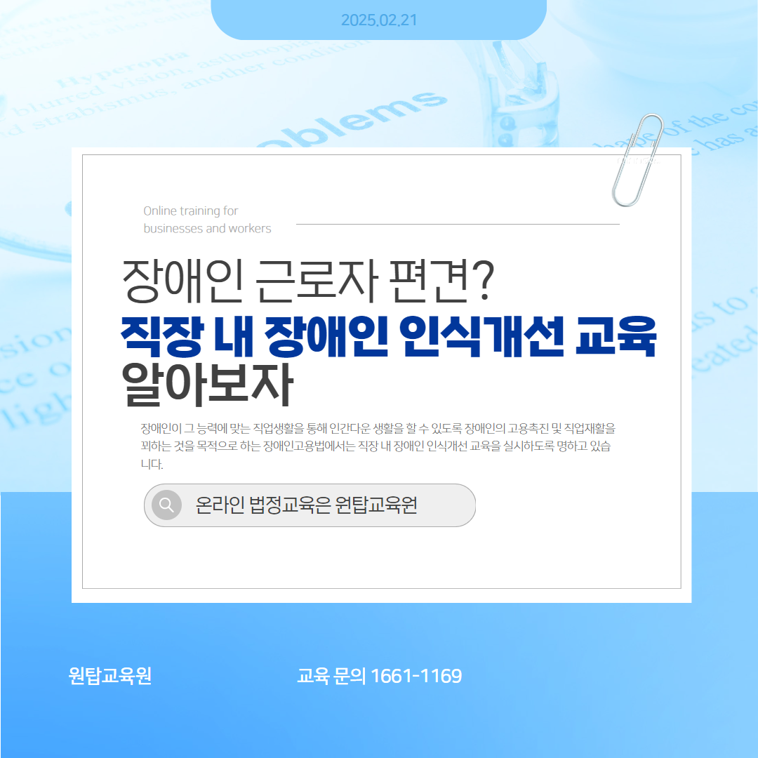 | 직장 내 장애인 인식개선 교육 알아보자 (0) | 2025.02.25 |