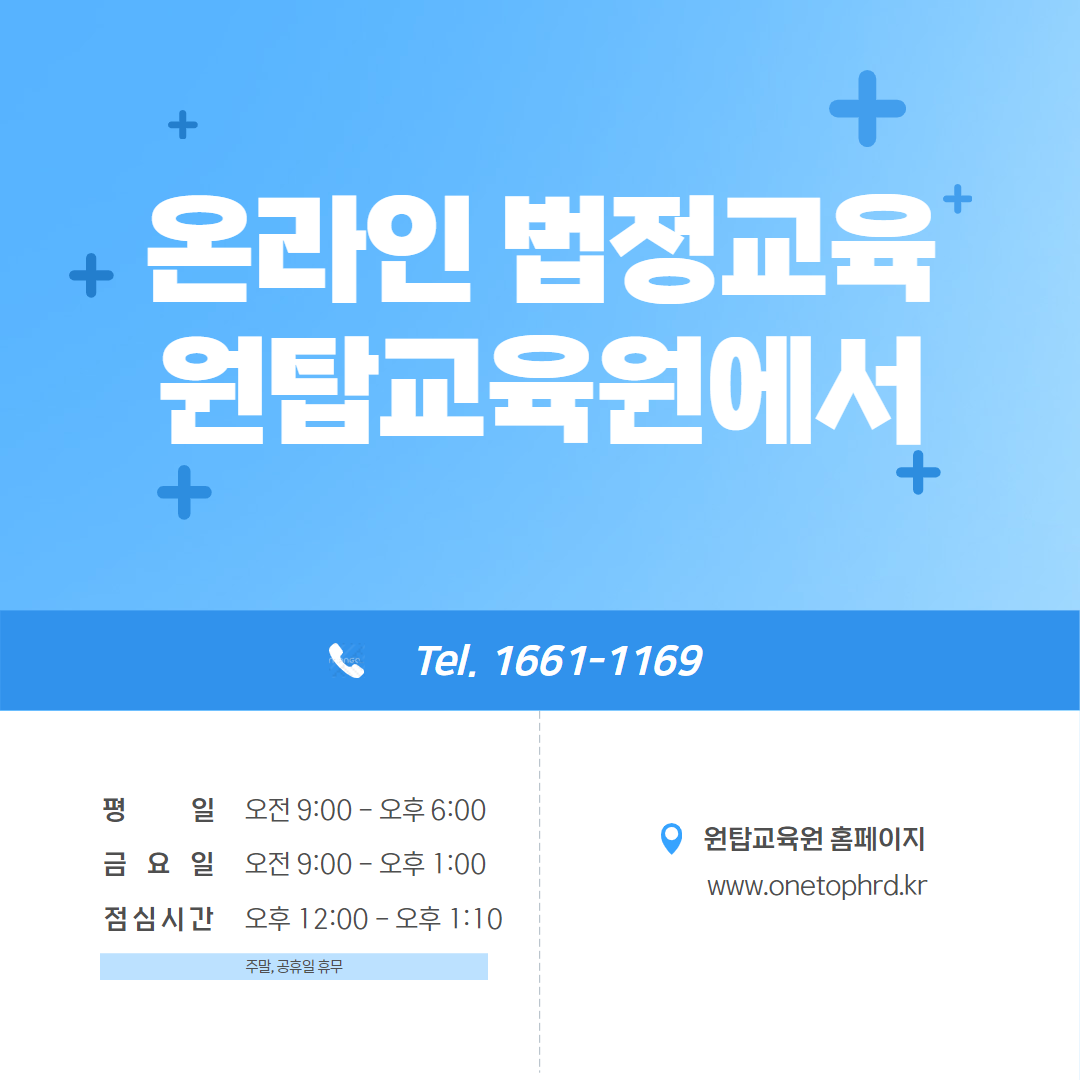 주식회사 원탑에이치알디-모든 직장인이 반드시 들어야 하는 법정필수교육과 산업안전보건교육을 온라인으로 제공해드립니다.
